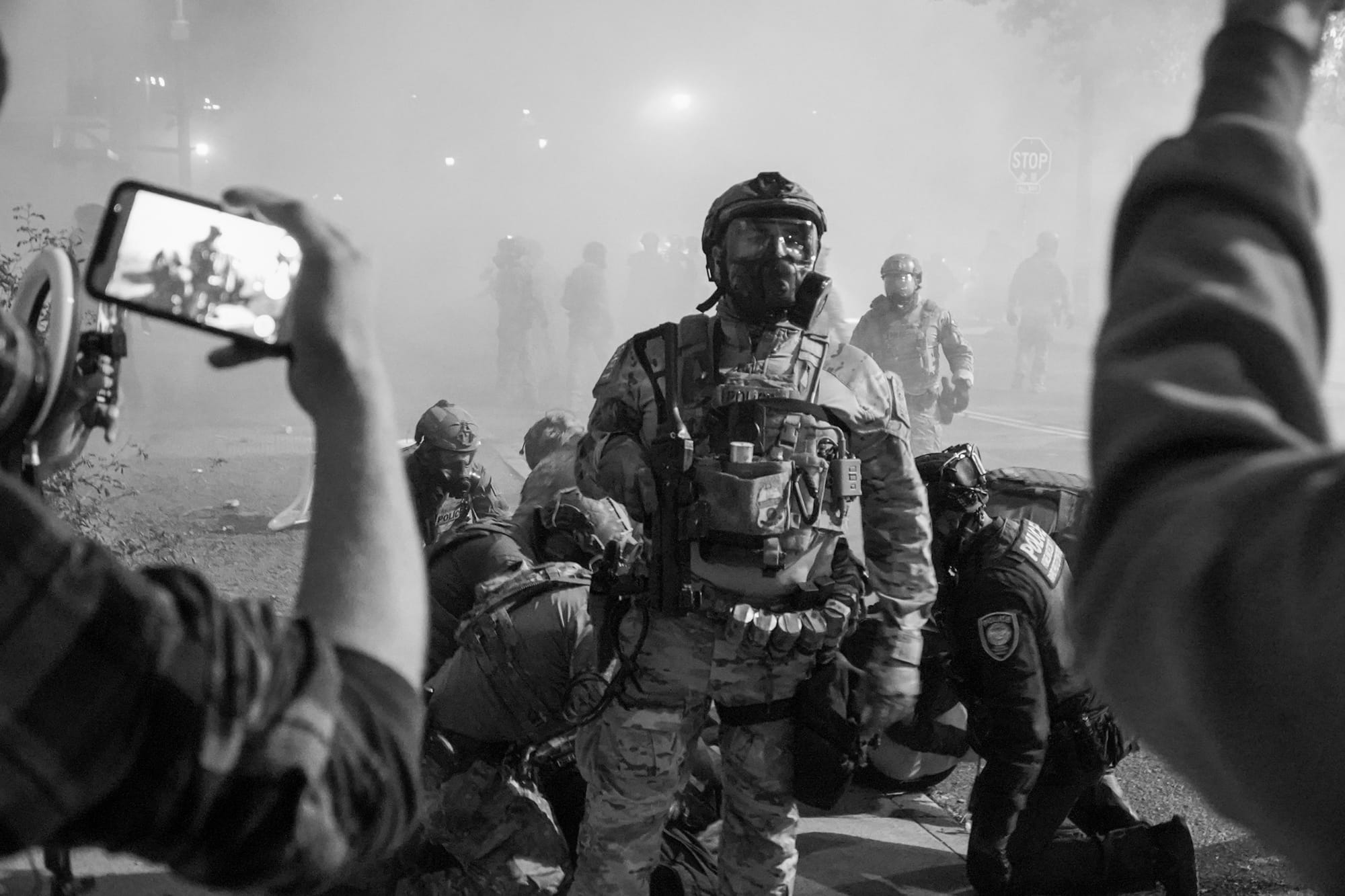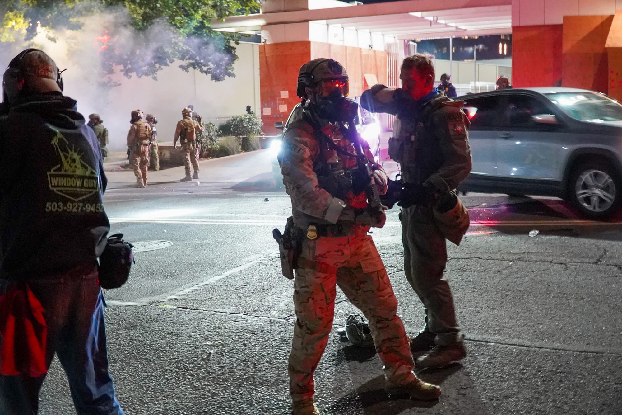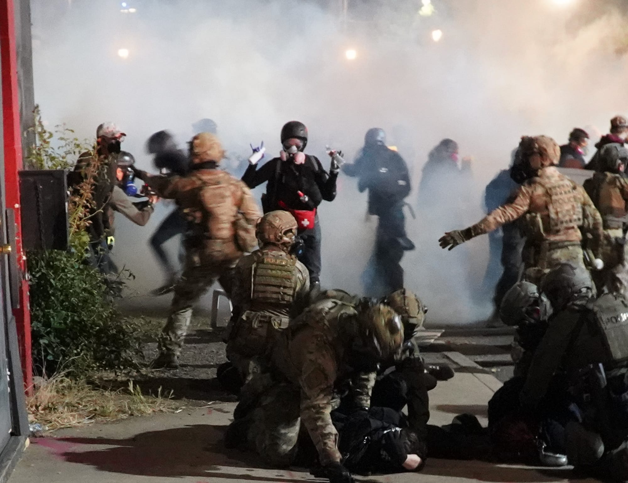 Tarrio and a gaggle of other fash grifters and agitators at ICE the weekend of November 14, 2026
