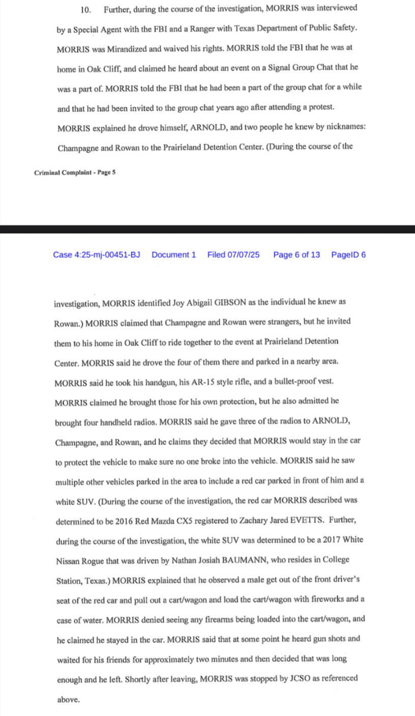 It is important to note that this same defendant was approached multiple times before her arrest by the FBI and encouraged to provide them with an interview about the events at the Prairieland facility, which she refused to do. Her arrest is clearly blatant retaliation for her non-cooperation and evidence of the fact that the state is simply targeting people for their political affiliations, not for actual alleged criminal activity in relation to the July 4th noise demonstration at the Prairieland concentration camp.