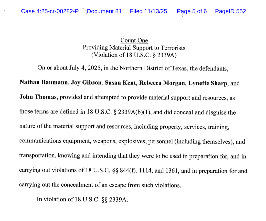 This is the same federal government that falsely accused the two legal observers that its agents publicly executed in Minnesota of being “domestic terrorists”. This is the very federal government that is now also alleging the same of these 19 people in North Texas.